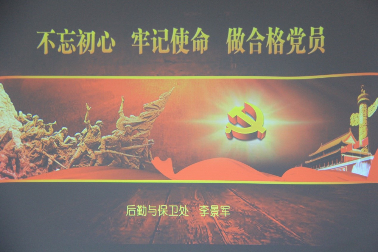 李景军老师从六个方面展开讲述----“不忘初心,牢记使命”的提出,主题活动的具体目标,方法步骤,重大意义,如何践行。李老师就践行初心,不辱使命,给员工们列举了具体的措施:要求员工不忘理想,牢记信念,做信仰坚定的楷模;心中有戒,不忘纪律,做遵守纪律的楷模;努力学习,积极进取,做勤奋学习的楷模;不忘奋斗,牢记责任,做担当奉献的楷模,牢记宗旨,不忘群众,做服务师生的楷模。同时生动形象的举例让同学们深切的体会到做一名合格党员应该如何践行。