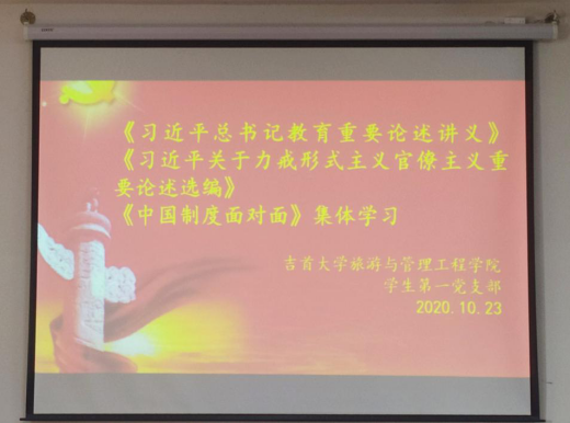 为贯彻落实关于《习近平总书记教育重要论述讲义》、《习近平关于力戒形式主义官僚主义重要论述选编》、《中国制度面对面》相关的学习事宜,公司员工第一党支部、员工第二党支部、员工第三党支部、研究生支部及教职工支部于2020年10月23日至2020年10月28日中午12:30在第二教学楼进行了重要学习。本次学习由各党支部书记领学,参加学习的对象为各党支部全体党员。